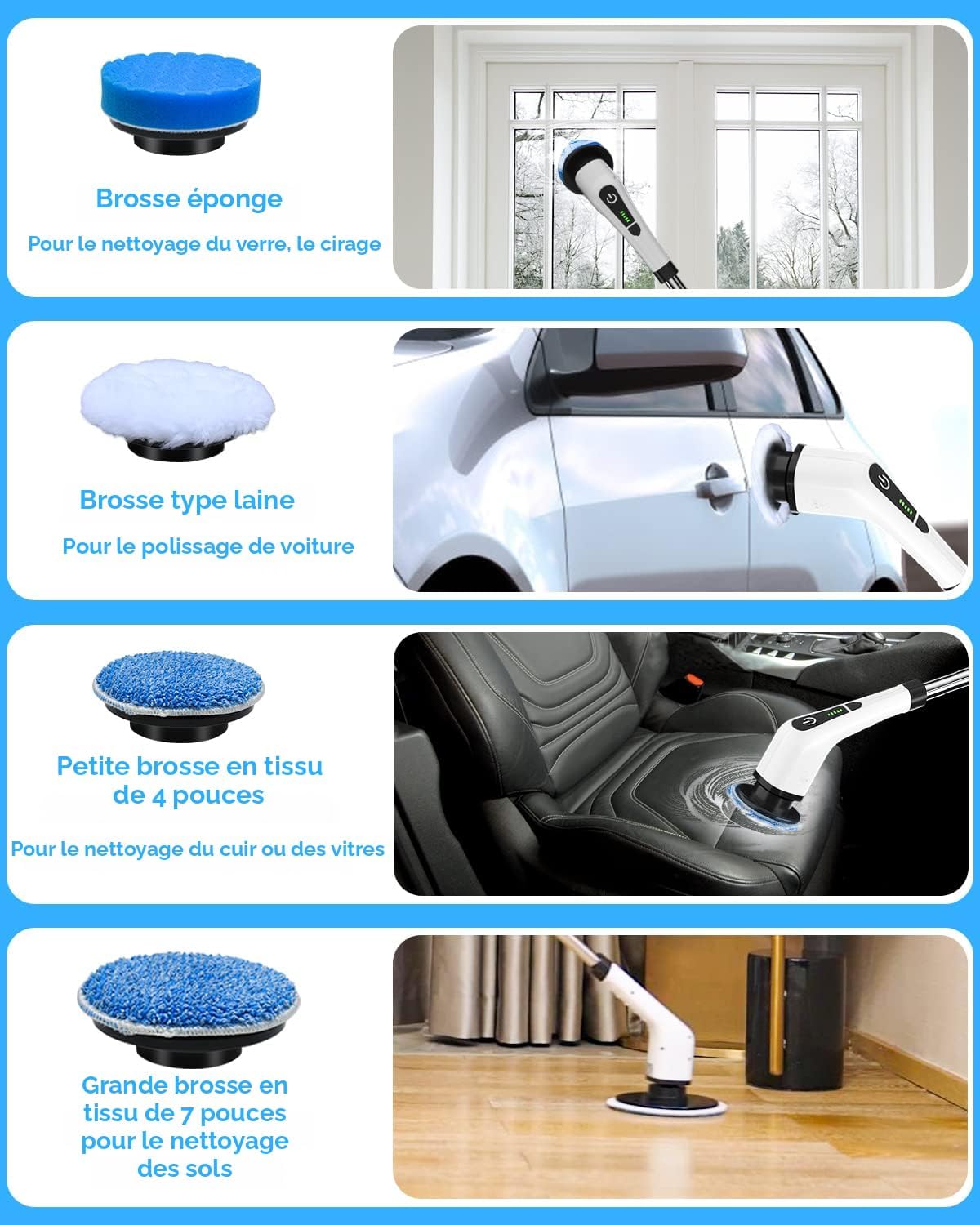Grâce à sa puissance rotative et à ses brosses interchangeables,